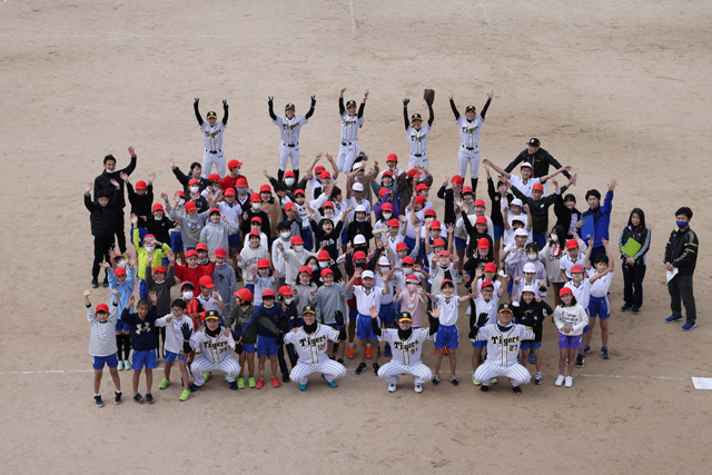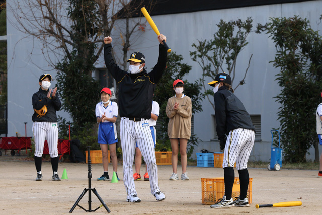 また、今回は選手と一緒にTigersWomenの三浦伊織選手、坂東瑞紀選手、高塚南海選手、浅野桜子選手、水流麻夏選手と、タイガースアカデミー・ベースボールスクールで指導している鶴直人コーチも参加しました。
