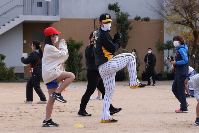 17日(金)、伊藤将司選手、中野拓夢選手、榮枝裕貴選手、岩田将貴選手が「西宮市立総合教育センター付属西宮浜義務教育学校」を訪問、ゲストティーチャーとして5・6年生の体育の授業に参加、児童の皆さんとキャッチボールやミニゲームなどをして楽しい時間を過ごしました。