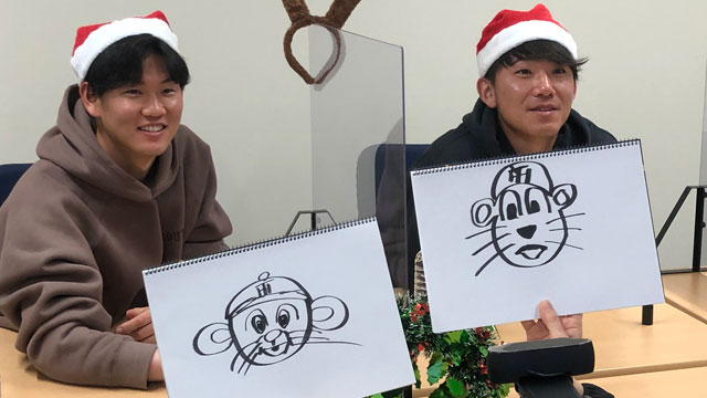 18日(土)に行われた「クリスマスFUN FANファンミーティング」のイベントゲストに、伊藤 将司選手、及川 雅貴選手が登場し、抽選で選ばれたKIDSのみんなと恒例の一問一答に加えて、借り物競争・お絵描き大会などのゲーム対決を楽しんでいただきました。