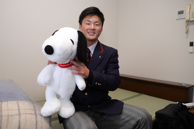 | 桐敷拓馬選手 大学野球部の総監督からもらった色紙 | 前川右京選手 智辯の皆で行ったUSJのゲームで取った スヌーピーのぬいぐるみ |