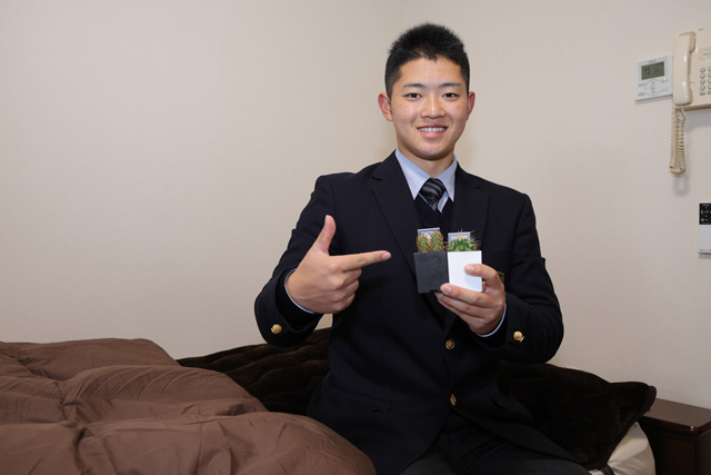 | 豊田寛選手 日立製作所の同期や後輩からもらったベルト | 中川勇斗選手 新しく買ったサボテン |