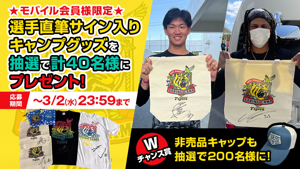 - 【モバイル会員様限定】選手直筆サイン入りキャンプグッズをプレゼント!さらにWチャンスも!