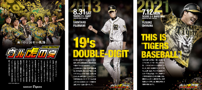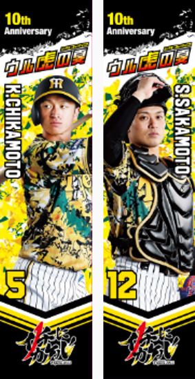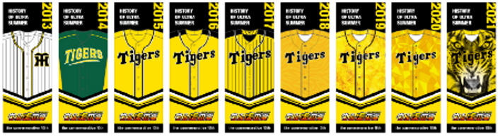 甲子園駅前広場の街灯バナーや球場正面のバナー、球場外周のメモリアルウォールが、ウル虎の夏10周年仕様に!歴代のウル虎の夏ユニフォームや、過去のウル虎名場面などを振り返ったウォールなど見ごたえたっぷりです!