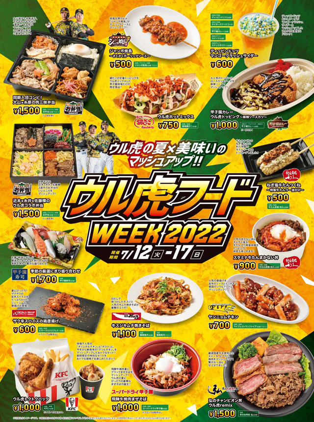 阪神甲子園球場 場内飲食売店では「ウル虎の夏2022」開催期間中、『ウル虎フードウィーク2022』を開催!今年のテーマは「マッシュアップ」! 限定メニューを食べてタイガースを応援しよう!