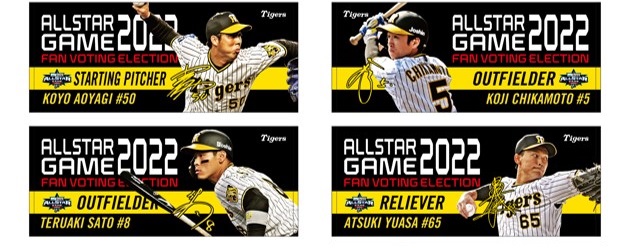 7月14日(木)より、「マイナビオールスターゲーム2022」にファン投票にて選出されました、青柳晃洋選手、近本光司選手、佐藤輝明選手、湯浅京己選手の記念グッズを下記のとおり発売いたします。
