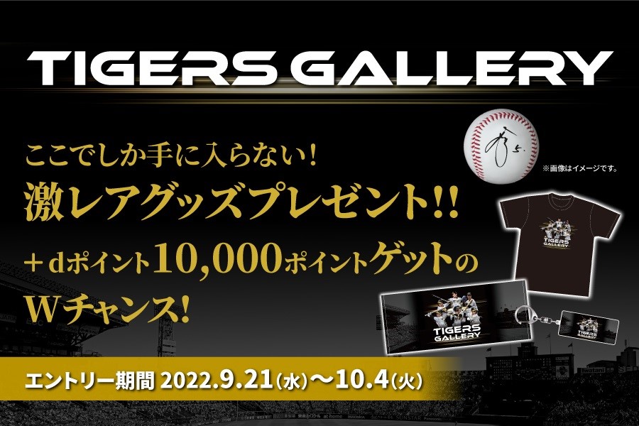 「Tigers Gallery」では、「Tigers Gallery会員登録者」かつ「dポイントクラブ会員の方」の中から抽選で、阪神タイガース選手の「直筆サイン入り練習球」などがあたるキャンペーンを9月21日(水)~2022年10月4日(火)まで開催いたします(ご応募にはエントリーが必要です)。