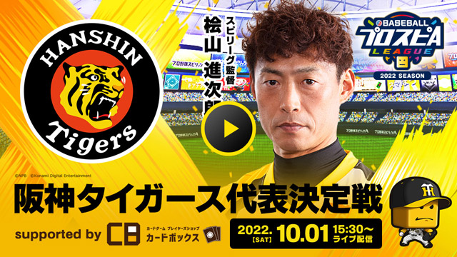 - 10/1(土)eBASEBALLプロスピAリーグ2022シーズン「阪神タイガース代表決定戦 supported byカードボックス」を開催