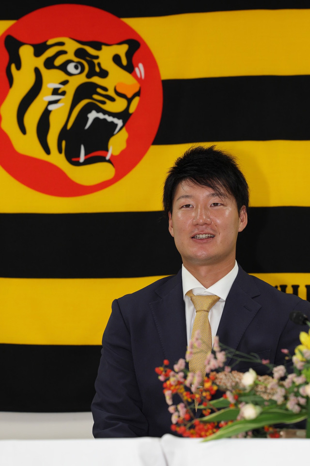 誰もが憧れる伝統あるタテジマのユニフォームを着れることを嬉しく思います。甲子園球場は小さい頃から憧れていましたし、高校野球で何度かプレーしましたが、そういった球場をホームにして戦えることは嬉しいですし、ファンの方は温かい言葉をかけてくれるので、それを力に変えて頑張っていきたいと思います。