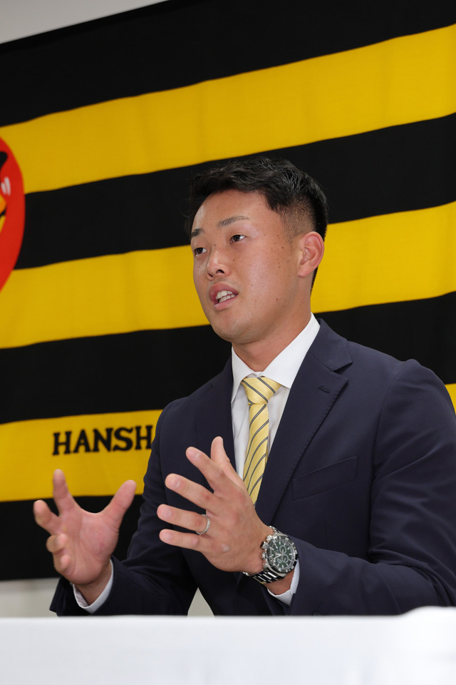 伝統ある歴史ある球団ですし、常に1位2位を争うチームのもとで野球ができるということは今後の野球人生ですごくプラスになると思いますし、その力になれるよう頑張りたいです。甲子園球場は高校2年の時にベスト4まで行けましたし、その活躍があって今の自分がいると思っているので、思い出の地でもあります。交流戦でプレーした際に守っていてすごいプレッシャーを感じましたし、それをホームで味わえるのは、とても力になると思うので、その力を借りていい活躍ができればと思います。