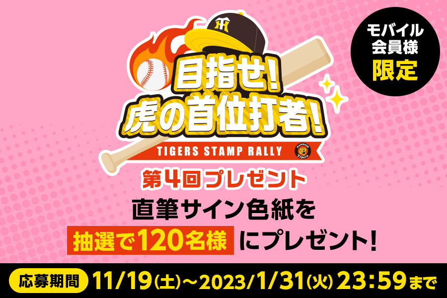 - 【公式モバイルサイト】「目指せ!虎の首位打者!」第4回限定プレゼント企画応募受付開始