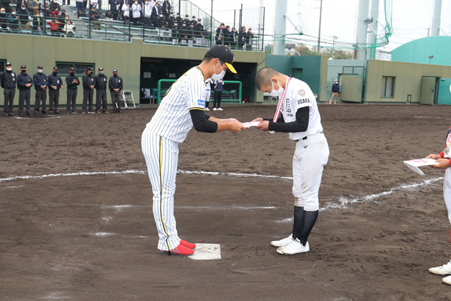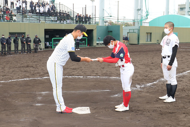優勝したヤング湊クラブには優勝旗とタイガースカップが、準優勝の河南リトルシニアには準優勝盾が贈られました。