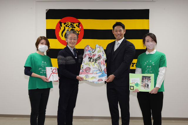 今年も原口文仁選手が、神戸市内の小児がんをはじめとする医療ケア施設「チャイルド・ケモ・ハウス」に対して、今季の安打数・打点数に応じた金額33万円(安打数:23本、打点数:10打点×各1万円)の寄付を実施いたしました。