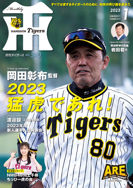 月刊タイガース1月号の表紙は、15シーズンぶりにタイガースを率いることになった岡田彰布監督。巻頭インタビューでは、就任に際しての思いや秋季キャンプの手応え、チーム構想などをたっぷり語っていただきました。その他、渡邉諒選手、タイガースOB岩田稔氏のインタビュー、新人選手入団発表会グラビア、NMB48川上千尋さんによる新連載など、情報満載でお届けします。
