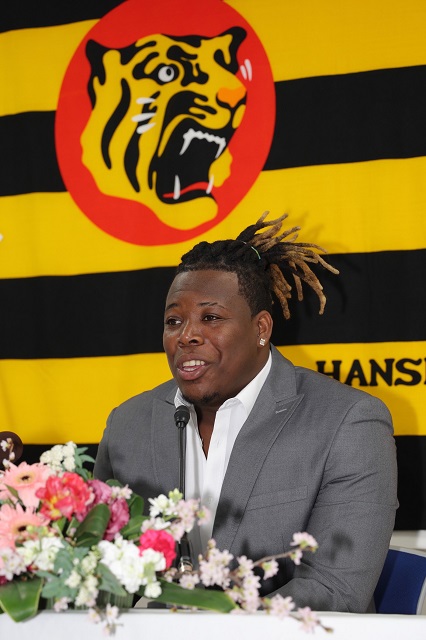 27日(金)、ヨハン・ミエセス選手が西宮市内にて入団会見を行いました。