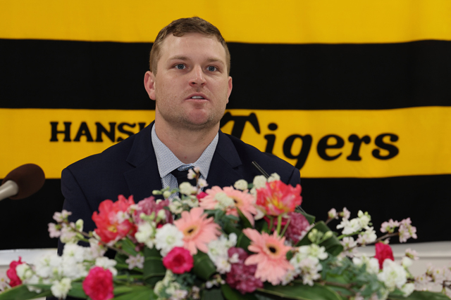 ―阪神タイガースの印象は?話しを聞いた時にMLBのドジャースに似ていると思いました。ファンも熱狂的でファンのサポートもあって、チームとしても本当にいいチームだなという印象がある。1日も早くチームの勝利に貢献できるように頑張っていきたいと思います。