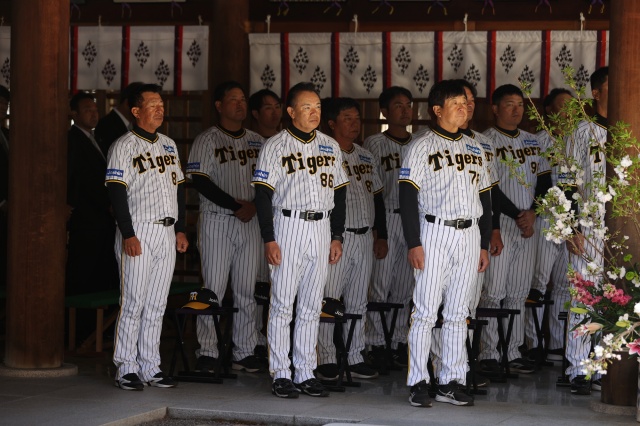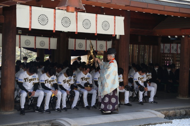 28日(火)、岡田彰布監督をはじめ、選手・スタッフ・職員が廣田神社(兵庫県西宮市)を参拝し、今シーズンの必勝祈願を行いました。
