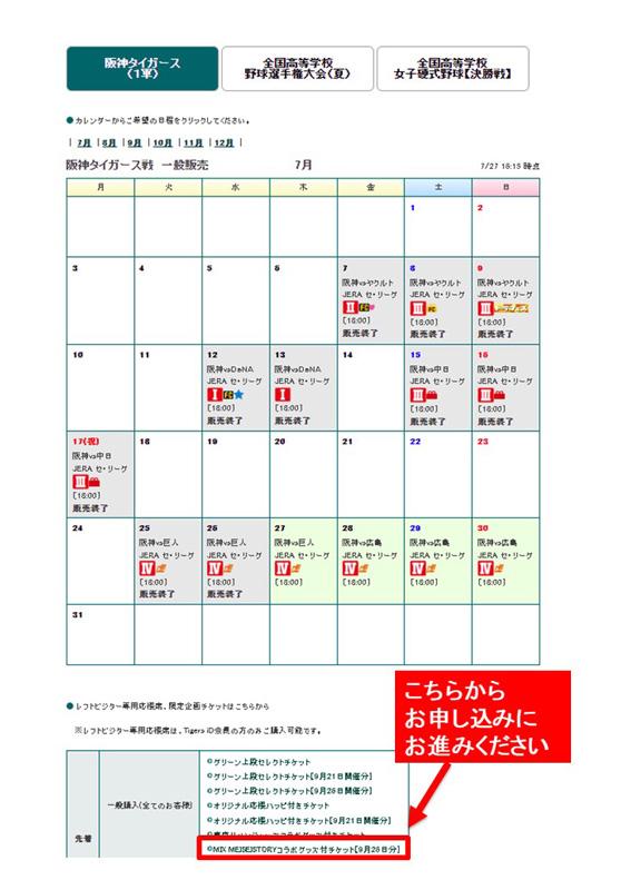 - ※阪神タイガース公式ファンクラブ会員対象の料金設定はございません。