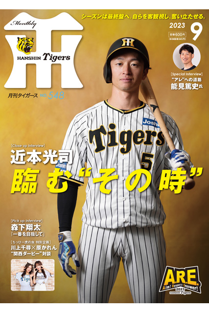 月刊タイガース9月号の表紙&巻頭インタビューには、走攻守でチームを引っ張る近本光司選手が登場。5年目を迎えた現在の心境や、終盤戦に向けた思いをたっぷりと語ってくれています。その他、森下翔太選手やOB・能見篤史氏のインタビュー、阪神ファン代表・川上千尋さんとオリックスファン代表・原かれんさん(ともにNMB48)による“関西ダービー"対談、マジック点灯までを追ったグラビアなど、今月もタイガース情報満載でお届けします。