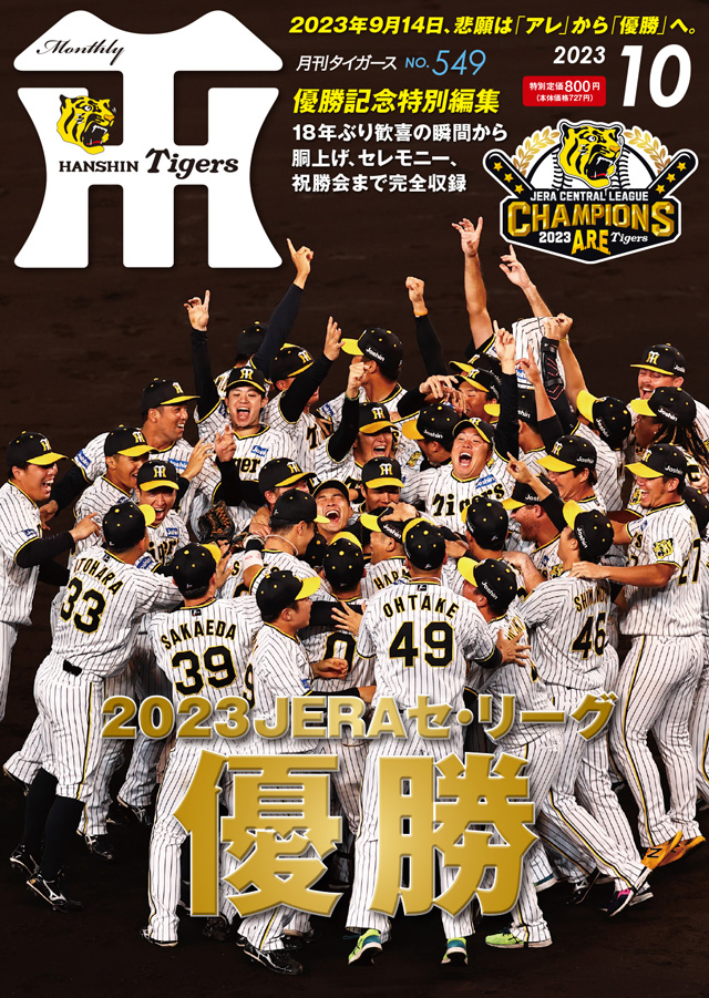 月刊タイガース10月号は優勝記念特別編集!18年ぶりの胴上げをはじめ、歓喜の瞬間、セレモニー、祝勝会までを、豊富な写真で完全収録しています。さらに優勝特集として、「平田道場」「ちっひー虎の虫」「虎番目線」「球団広報部撮影!レアフォトギャラリー」などの連載コーナーも優勝特別編としてお届け。優勝の感動が蘇る、完全保存版の一冊です。