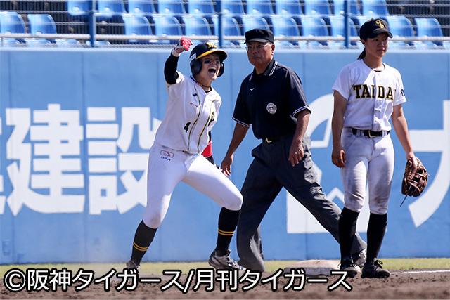 8回に阪神TWは、一死一・二塁から正代の右適時安打で勝ち越すと代打・安藤の右中間への2点適時三塁打、前田葵の左適時打、前田桜の左適時二塁打で5点を挙げると最後は森が三者連続三振で粘る大体大を突き離し、10対5で勝利した。