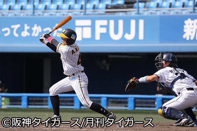続く6回表、阪神TWは、先頭の三浦が中安打で出塁すると田口の右安打などで一死満塁のチャンスをつくる。ここでこの日5番に入った安藤が均衡を破る先制の2点適時打を放つ。
