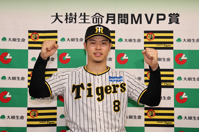24日(火)、9・10月度の「大樹生命月間MVP賞」が発表され、セ・リーグ打者部門で佐藤輝明選手が受賞しました。