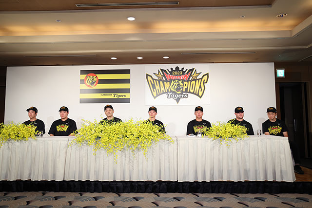 5日(日)、「SMBC日本シリーズ2023」でオリックス・バファローズを下して38年ぶりの日本一を果たし、岡田彰布監督、近本光司選手、大山悠輔選手、村上頌樹選手、青柳晃洋選手、シェルドン・ノイジー選手が会見を行いました。