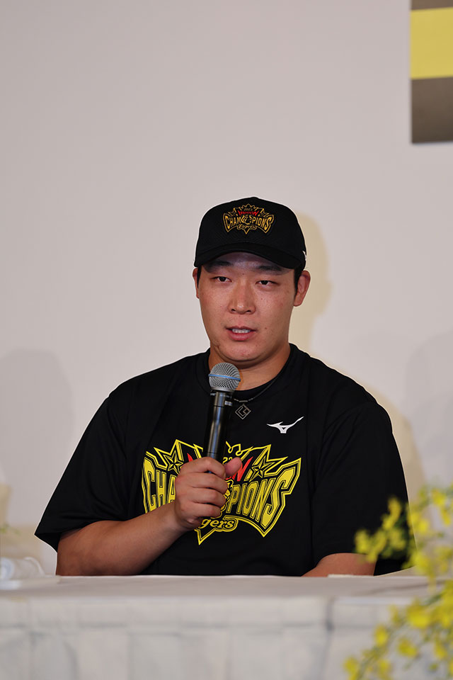 いや、もちろんどっちもありましたし、僕の中ではその日本シリーズに登板してる(村上)頌樹だったり(伊藤)将司だったり、そういうピッチャーを見ていてやっぱり羨ましいという気持ちの方が大きかったので、本当にこの日本一が決まる最後の試合で登板させてもらったっていうのは、自分の中で本当にいい経験になったかなと思います。