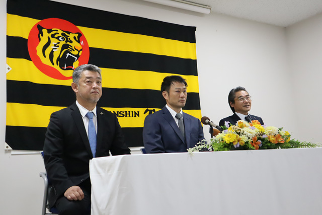 まずは38年ぶりの日本一おめでとうございます。この栄えあるタイミングでこのような派遣契約を阪神タイガースと石川の間で結べたことを感謝しています。これが野球界発展のためのひとつの起爆剤として、タイガースの力を借りながら、BCリーグ時代から17年間やっておりますが、いろんな交流を深め、球団の価値を上げていきたいと思います。