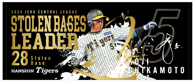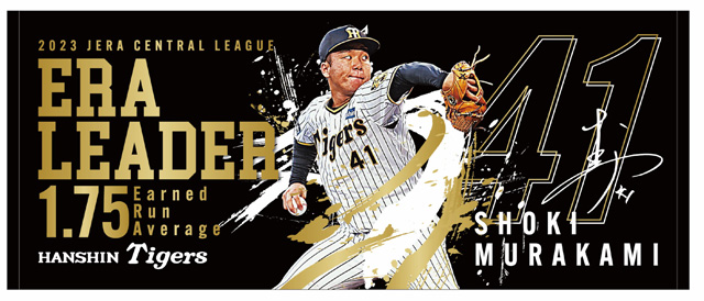 JERA セントラル・リーグ2023年レギュラーシーズンにおきまして、村上頌樹選手が「最優秀防御率投手賞」、岩崎優選手が「最多セーブ投手賞」、中野拓夢選手が「最多安打者賞」、大山悠輔選手が「最高出塁率者賞」、近本光司選手が「最多盗塁者賞」の個人タイトルを獲得いたしました。これらを記念し、記念グッズの販売を開始いたします。