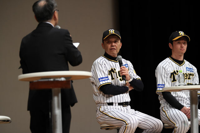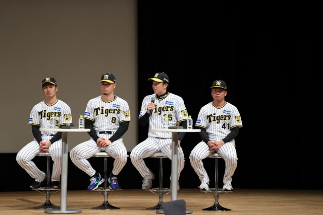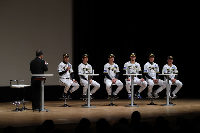27日(月)、岡田彰布監督、近本光司選手、坂本誠志郎選手、佐藤輝明選手、才木浩人選手、村上頌樹選手が尼崎市主催の「阪神タイガース リーグ優勝及び日本一報告会」に参加し、リーグ優勝と日本一を報告いたしました。