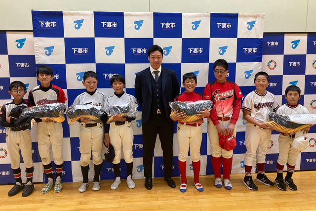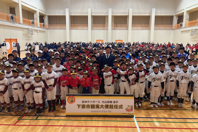 3日(日)、茨城県下妻市にて、大山悠輔選手の「下妻市観光大使」の就任式が行われ、菊池下妻市長より大山選手へ観光大使の委嘱書と記念品が手渡されました。