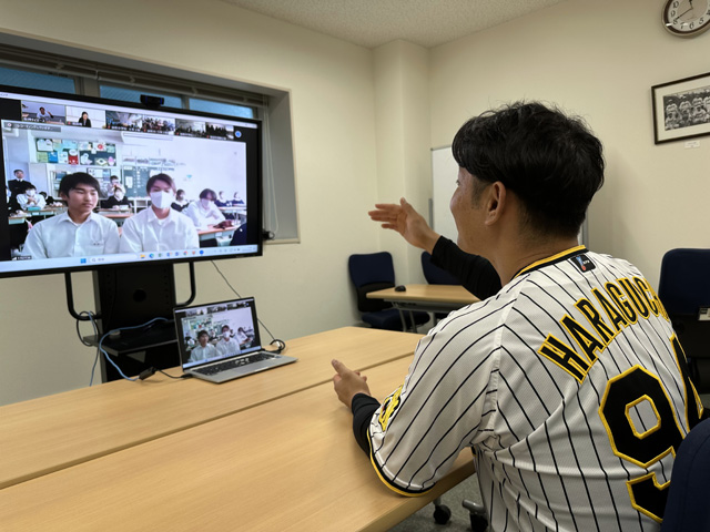 4日、原口文仁選手が、自身の出身地である埼玉県寄居町が主催する「道徳講演会」にオンライン参加し、寄居町立小学校5、6年生及び中学校1年生から3年生の児童生徒 約1200名を対象にした講演会を行いました。