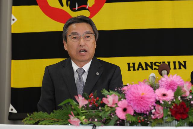 また、並行して阪神グループのスポーツ・エンターテインメント事業各社の役員もさせていただきまして、様々な経験をしてまいりました。今後は各所での経験を生かしながら、また皆様のお力添えも賜りながら、ファンの方々に喜んでいただけるような球団経営ができるように邁進してまいりたいと思います。どうぞよろしくお願いいたします。