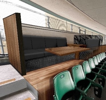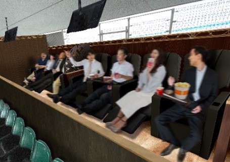 グリーンシートエリア(バックネット裏)最上段に位置する半個室型シート。バックネット裏中央から見渡す絶好の眺望をお楽しみいただけるほか、座席は「背もたれ」「座面」「フットレスト」が連動する電動リクライニングシートを採用し、備え付きのテレビモニターと併せてご利用いただくことで、お客様それぞれに合ったスタイルでご観戦いただけます。