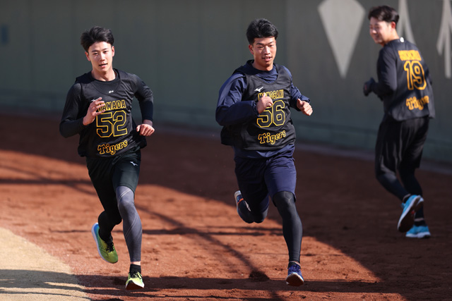 9日(火)、阪神鳴尾浜球場で、新入団選手8名が合同自主トレを開始しました。