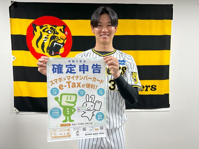 26日(金)、及川雅貴選手が、大阪国税局主催の「スマートフォンを利用したe-Taxによる申告体験」を行いました。