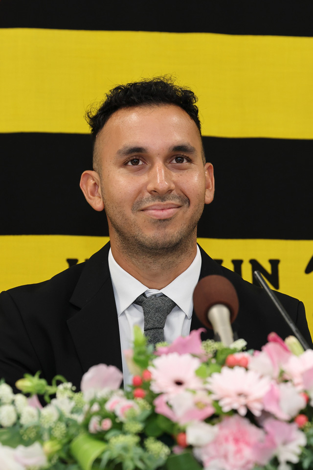 29日(月)、ハビー・ゲラ選手が西宮市内にて入団会見を行いました。