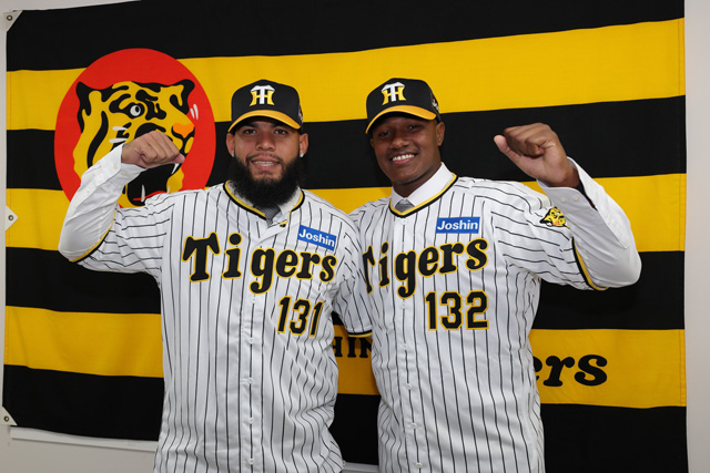 23日(土)、ホセ・ベタンセス選手、アンソニー・マルティネス選手が西宮市の球団事務所にて入団会見を行いました。