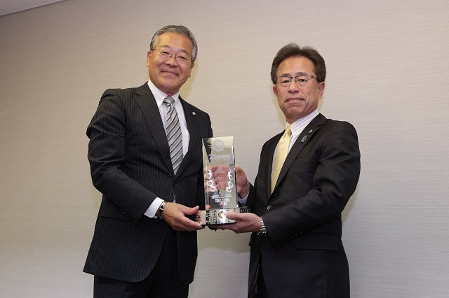 2日(火)、2023年JERAセントラル・リーグ公式戦の優勝トロフィーのレプリカが、セントラル・リーグ杵渕和秀統括から粟井一夫社長へ贈られました。
