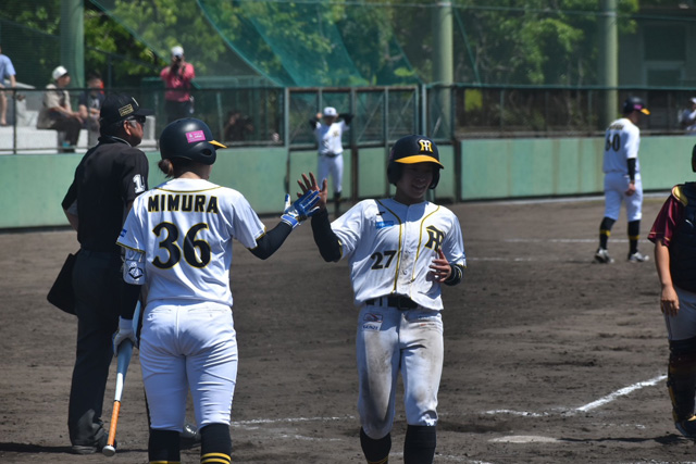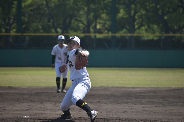 阪神TWにとってのラッキートーナメント1回戦。2回裏、京都明徳は、阪神TW先発の樫谷を攻め、北川の適時二塁打とスクイズで3点を先制する。2回まで無得点に抑えられていた阪神TW打線だったが、3回表、二死から蜜浦が四球で出塁するとそこから打線が繋がり、髙橋愛、髙橋結、日野口の適時打などで一挙7点をあげ、逆転に成功する。その裏、樫谷が京都明徳打線を3人で抑えると、続く4回表にも連続安打から相手の四球や失策が絡み、6点を追加した。10点差となった4回裏、二番手・前田祐がテンポが良い投球で三者凡退に抑え、阪神TWがコールドゲームで初戦を突破した。