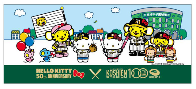 2024年に「みんななかよく」が企業理念である株式会社サンリオのハローキティが50周年、阪神甲子園球場が100周年を迎えることを記念して、6月26日(水)対中日戦において開催する「ハローキティ50th みんななかよくナイター」での当日イベントやグッズ販売が決まりましたのでお知らせいたします。