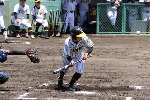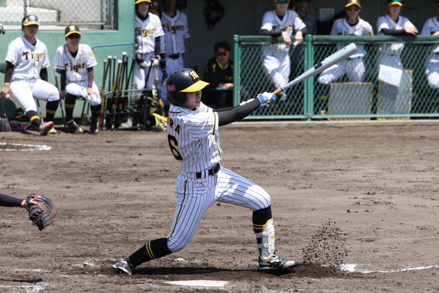 ラッキートーナメント2回戦、阪神TWは、2回先頭の田中が四球で出塁すると、髙橋愛の犠打、パスボールで一死三塁とチャンスを作る。ここで三村が犠飛を放ち、1点を先制する。阪神TWは、その後も再三、走者を出すも桃教大の先発・富田から追加点が奪えない。阪神TW先発・佐伯はテンポの良い投球で桃教大打線に連打を許さず、7回を被安打2に抑える好投を見せ、完封勝利。