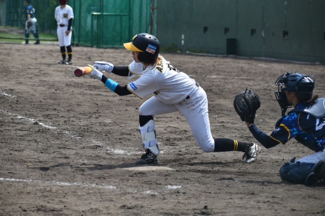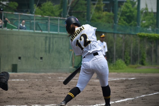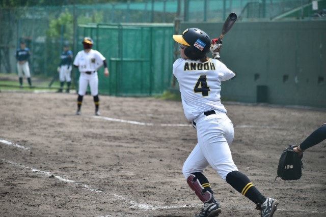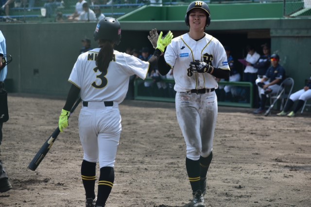 ここまでリーグ戦2戦2勝同士のチームの対戦となったこの一戦、2回裏、桃教大は、阪神TW先発の竹内を攻め、一死三塁のチャンスを作り、スクイズで1点を先制すると更に連続安打で1点を追加し、2対0とリードを奪う。2回まで桃教大先発の坂本に無得点に抑えられていた阪神TWは、3回表に三浦の左二塁打から正代の左適時打で1点を取り返す。4回には、先頭の安藤が左二塁打で出塁すると、日野口と髙橋結の適時打で2点を取り、逆転に成功した。勢いに乗った阪神TW打線は、続く5回にも相手の四死球やボーク、田口の犠飛などで一挙5点を奪い、桃教大を突き放す。更に6回には、前田葵の左安打から安藤の左中適時二塁打、日野口の右適時二塁打で2点を奪い、8点差とした。