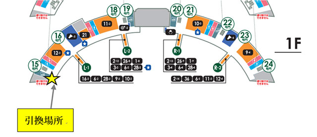 ※18号門よりご入場いただき、コンコースを右手に進み、ケンタッキー・フライド・チキンを通過した先にございます。