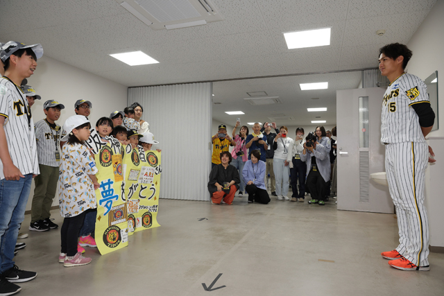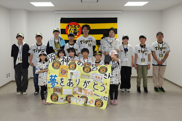 球場での練習見学後、西純矢選手と交流会では、こどもたちから激励のメッセージをいただきました。また、甲子園歴史館にも訪問し楽しい時間を過ごしました。