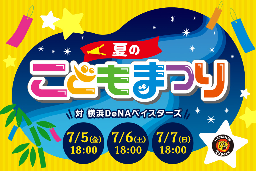 7月5日(金)~7日(日)の対横浜DeNAベイスターズ戦において「夏のこどもまつり」を開催いたします。「こどもたちにとって、野球選手を身近に感じてもらいたい」という想いから、「KIDSハッピ」のプレゼント、大型ビジョンによる選手名の「ひらがな掲出」を実施いたします。この夏、最初の思い出は阪神甲子園球場で!