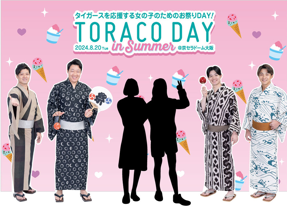 8月20日(火)に京セラドーム大阪にて開催するガールズフェスタ「TORACO DAY」にて設置予定の浴衣姿の選手たちと写真が撮れるフォトブースが、ほっともっとフィールド神戸にも登場!(全日3種類設置予定)