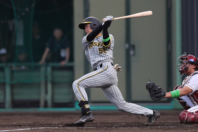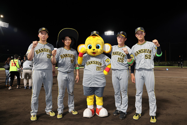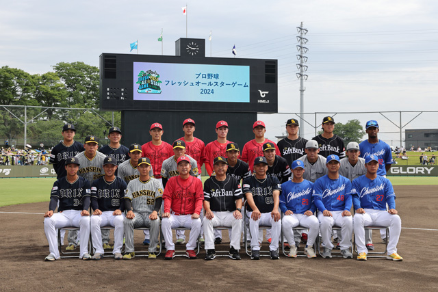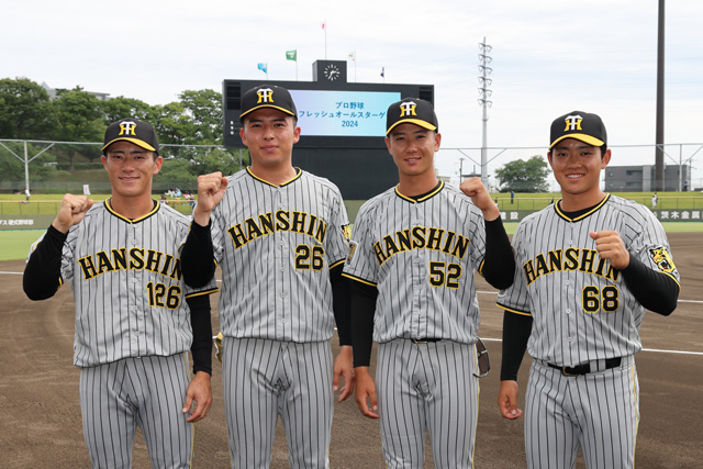 20日(土)、「フレッシュオールスターゲーム2024」がウインク球場(姫路市立姫路球場)で開催されました。試合はイースタン・リーグ選抜に負けてしまいましたが、ウエスタン・リーグ選抜として、椎葉剛選手、中川勇斗選手、山田脩也選手、福島圭音選手が出場しました。