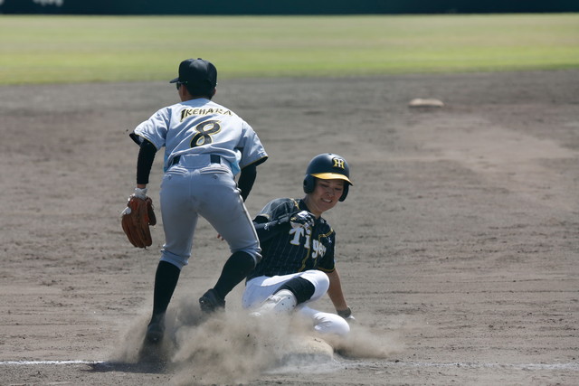 阪神TWは、2回先頭の前田葵が安打、中江の四球、田中の犠打により、一死2、3塁とすると日野口の犠飛で1点を先制する。侍は3回表、四球とエラーで一死1、3塁と同点のチャンスを迎え、スクイズで追いつく。